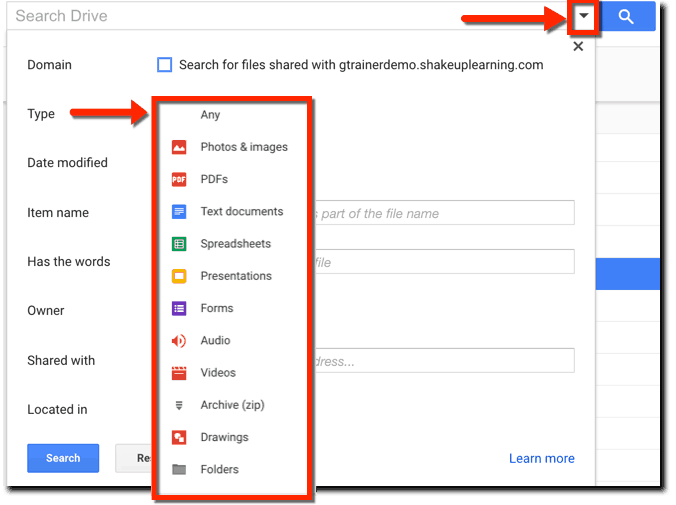 Learn more search strategies: 8 Fantastic Ways to Find Anything in Google Drive.