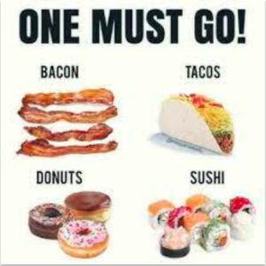 Provide a series of items and explain that one must go, never to be eaten/used again. Jen said the debate over bacon, tacos, donuts, or sushi became extremely heated and provided her with teachable moments.